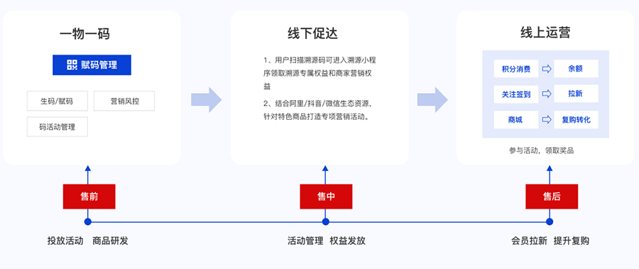 每個產(chǎn)品都有一個防偽碼,每個防偽標(biāo)簽只能使用一次,不能重復(fù)使用,假冒偽劣產(chǎn)品減少。通過數(shù)字化防偽手段,消費者對品牌更加熟悉,通過多元化的信息展示可大大提高品牌產(chǎn)品競爭力,提升企業(yè)美譽度,增強客戶購買意愿。