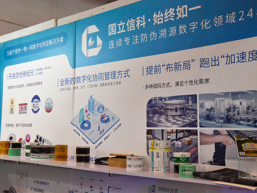 本次展會(huì)國(guó)立信科展示了行業(yè)全新防偽產(chǎn)品“防偽溯源膠帶”及升級(jí)版賦碼解決方案,助力企業(yè)實(shí)現(xiàn)原材料采購(gòu)、生產(chǎn)、倉(cāng)儲(chǔ)流通、供應(yīng)鏈等精益化管控及消費(fèi)者精細(xì)化運(yùn)營(yíng)。獨(dú)家專利防偽產(chǎn)品+全生命周期質(zhì)量追溯+精準(zhǔn)營(yíng)銷,賦能建筑材料生產(chǎn)企業(yè)數(shù)字化升級(jí)!