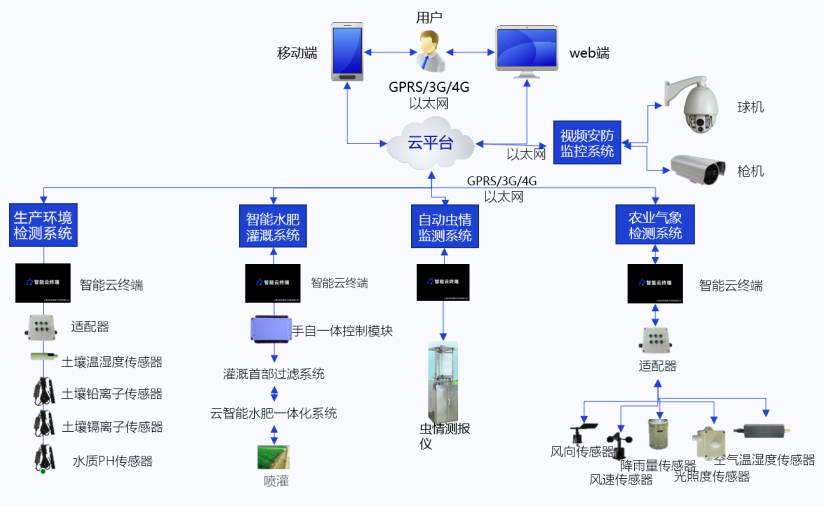 系統(tǒng)具有靈活開放性,根據(jù)不同用戶的農(nóng)業(yè)生產(chǎn)需求,可接入多種傳感監(jiān)控設(shè)備、設(shè)施,滿足多樣化需求